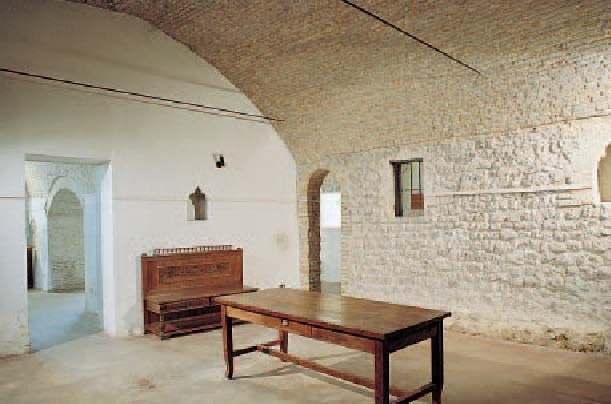 A plan tiere de ale di Alvise a son lis Cantinis che a vegnin viertis par cunvignis, ativitâts culturâls e cenis. Si jentre dal curtîl dal cjistiel là che e je la jentrade grande; altris dôs jentradis a coleghin la sale cui servizis, riscjaldât come dut il rest, e cuntun ambient di servizi cul sofit cul volt a crosere e a cuestis une vore carateristic. Lis Cantinis, restauradis daspò dal taramot dal 1976, a son fatis di trê ambients (7x7x4; 4x6x4; 6x4.5x4) cul sofit di modon, nicjis pes lums tes parêts, furnîts con semplicitât cun mobii antîcs. Il numar dai puescj di sentâts al è sù par jù 70, la capience e rive a 100 personis. A àn il taulin pai relatôrs e si pues scurî l’ambient. La disponibilitât e je par dut l’an.