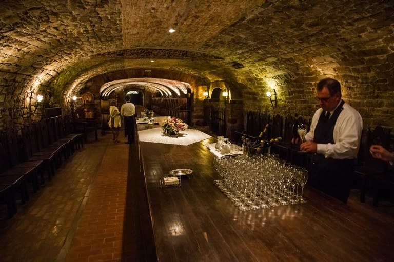 La lavorazione del vino avviene nella cantina di vinificazione in zona La Boatina a Cormòns, mentre al Castello di Spessa, nelle cantine medievali del 1.200, avviene l’invecchiamento. Le antiche cantine sono in parte scavate nella roccia e caratterizzate dal pavimento in cotto e dal soffitto voltato a mattoni. Da un collegamento ricavato nel 1989, scendendo 70 scalini, si accede al bunker militare costruito a metà degli anni trenta. In questa unica ed inimitabile cantina vengono affinati in numerose barriques tutti i vini rossi dell’azienda agricola Castello di Spessa.