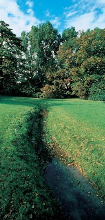 Fino a trent’anni fa sul prato spiccavano aiuole e vialetti, mentre ora è stata preferita una fisionomia più naturale.