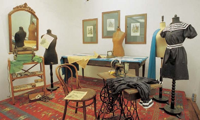 Segue un'esposizione, su manichini, di capi che illustrano le varie tipologie vestimentarie indossate nell'arco della giornata ed in alcune particolari occasioni. Nella media e alta società erano, infatti, previsti continui cambi d’abito e accessori diversi per ogni circostanza (tra questi guanti e borsette dal Settecento al 1925). Gli abiti, di gusto mitteleuropeo, erano sia importati dalle capitali della moda, Parigi e Vienna, sia provenienti da negozi e atelier locali. Per questo, in una sala destinata ad ospitare eventi a rotazione, è stato ricostruito il luogo chiave dell'eleganza femminile: la sartoria.