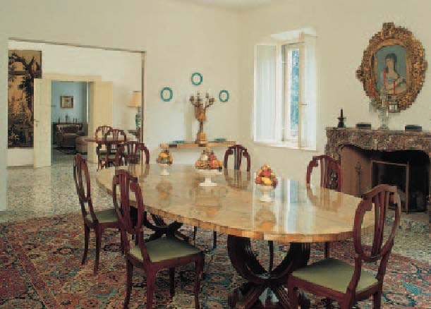 La sala Rota (15x7x3.50) è la più grande fra le varie sale del castello: situata al piano terra, vi si accede da due grandi portoni, uno dei quali, affacciandosi direttamente nello splendido parco che circonda il palazzo, funge anche da uscita di sicurezza; dunque è dotata di due ingressi diretti e quattro indiretti che la collegano agli ambienti contigui: alcune salette di piccole dimensioni e la sala Badoglio (7x6.50x3.50). Tutti gli ambienti non sono riscaldati. La sala Rota è così denominata per i fastosi ritratti degli antenati di questa famiglia che ne decorano le pareti, conferendo all’ambiente una atmosfera di antico splendore; il pavimento è in terrazzo alla veneziana decorato a mosaico ed è arredata sobriamente con pregevoli mobili di famiglia fra cui spicca il grande tavolo centrale, usato anche per i relatori. La capienza è di circa 100 persone ed è possibile oscurare l’ambiente. La disponibilità è per tutto l’anno.