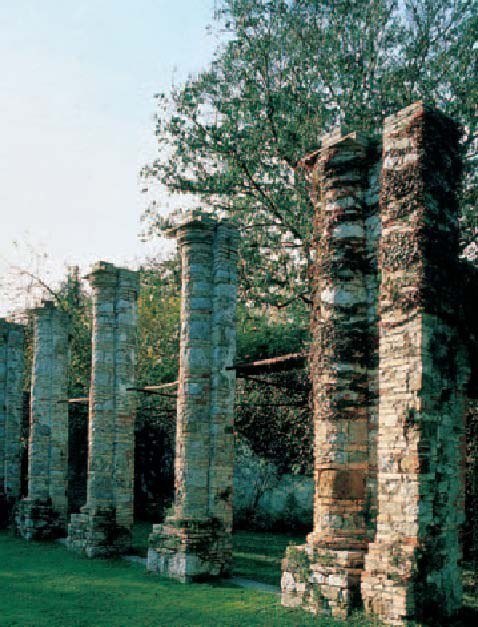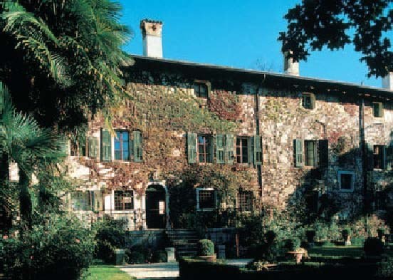 The influence of the late barocco style can be seen in the arrangement of the splendid orangeries surrounded by impressive 18th-century columns; the somewhat recent addition of the beautiful Papa Meilland roses, partially functioning as roof cover, donate a genteel quality to the structure. Many trees planted in that period still stand today such as the imposing evergreen magnolia (circa 300 years old) in the middle of the park; there are also maples, limes, horse-chestnuts, and common yews (Taxus baccata). Other trees from the 1700s are the European hornbeams (Carpinus betulus) growing along the waterway which crosses the green area. Palm trees have been recently planted close to the exit forming a shady niche; the romantic willow trees growing around the ground water springs provide the perfect refuge for ducks, swans, and mallards. Beyond the castle drive there are splendid green lawns, with in the middle a charming round fountain, perhaps dating to the 1600s, and trees bounding the bottom part.