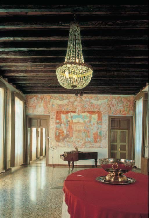 The Venetian terrazzo flooring, newly-frescoed walls, grand chandeliers and the period furniture of the reception hall all blend together to create an atmosphere of splendid regality. The hall can hold from 120 to 160 people, depending on how it is arranged. It is perfect for conferences or meetings, equipped with two tables and an adjustable lighting system. The modern bathroom facilities are heated. The reception hall is available year-round. There are also three adjoining halls (17/21/17x8x4m), restored to modern standards, heated, capable of holding from 120 to 160 people.