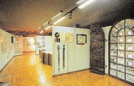 The next section is entitled Venice, Maximilian, the Turks. At the end of the 15th century Gradisca, then a small peasant village, was transformed by the Venetians into a prestigious citadel, indispensable to Venice as a defence against its greatest enemies: Maximilian of Hapsburgs and the Turks. The section contains a collection of weapons, such as swords and guns from the 15oos to the 1800s; of particular interest is a Turkish suit-of-armour dating from the late 16th to the early 17th century.